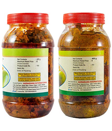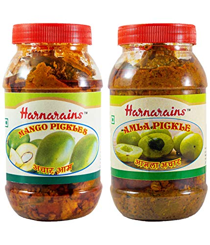 Harnarains Mango Pickle & Amla Pickle in Pure Mustard Oil Fresh Homemade (400g each) (Pack of 2)