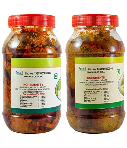 A combo pack of Mango Pickle and Amla Pickle which curates the health benefits of both of them! Both of these pickles are prepared from highest quality handpicked ingredients like Ripened Mangoes and Amla. Being spicy and delicious in nature they are also coupled with multiple health benefits. Both of these are excellent acidity regulators and are just like your grandmother's homemade pickles - equally healthy and tasty. These Pickles are highly recommended for people with heart diseases arthritis old age and high cholesterol. Both of these pickles taste fantastic when paired with your favorite dishes like Parathas Mathri or even Khakhra.