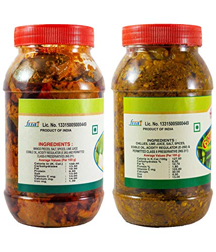 A combo pack of Mango Pickle and Green Chilli Pickle which curates the health benefits of both of these! Both of these pickles are our best selling items of all time. Despite having a very familiar homemade taste like your grandmother just made them they also pack multiple health benefits. Green Chillies have always been traditionally consumed as a medicinal herb and are beneficial for people with throat congestion digestive issues and heart-ailments like high blood cholesterol. These pickles also help reduce weight relieve pain and curb acidity. They taste best with your favorite meals like Paratha Mathri or even Khakhra! This combo pack comes in a set of 2 durable plastic PET jars.