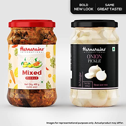 Harnarains Mixed Pickle & Onion Pickle in Vinegar 400 gm (Pack of 2)