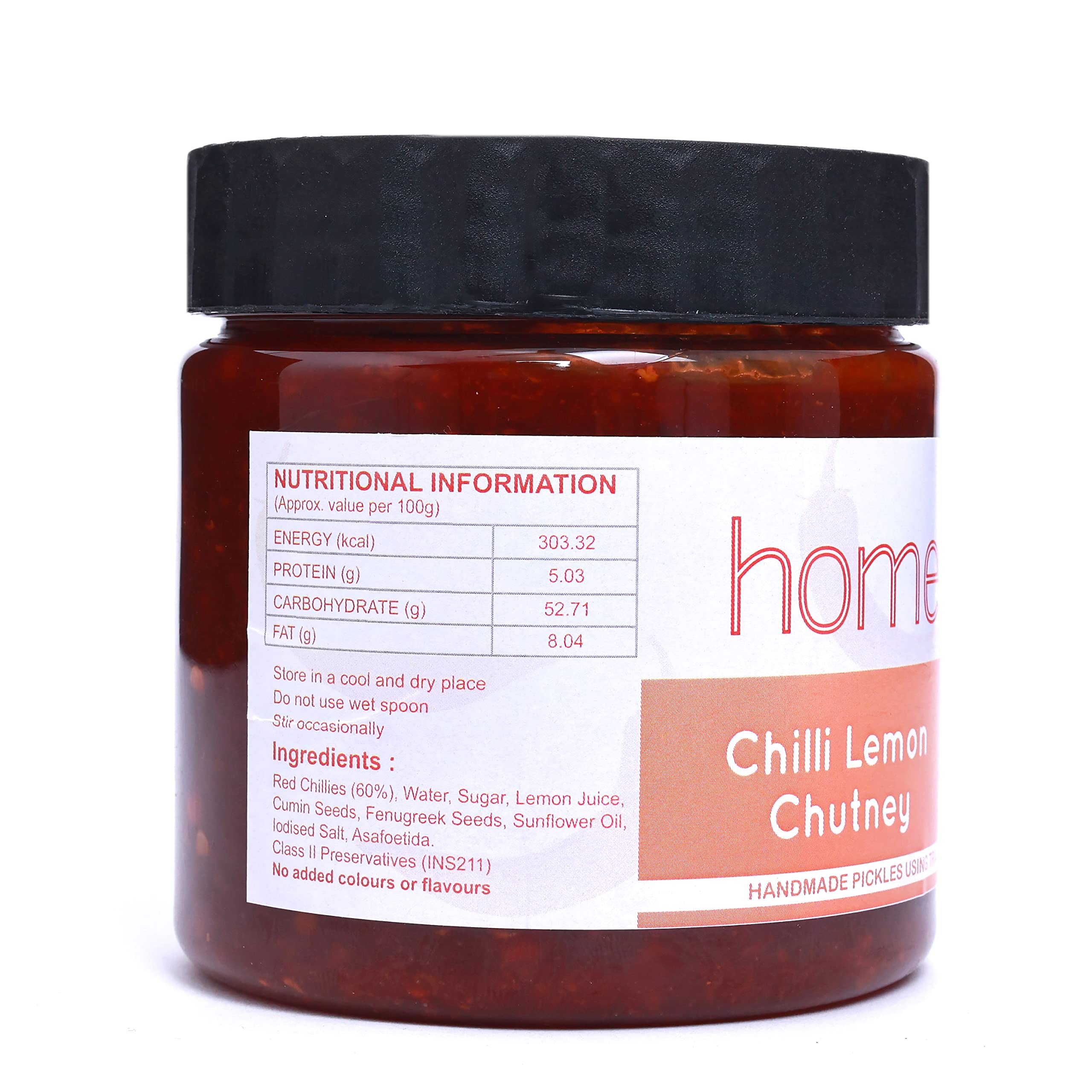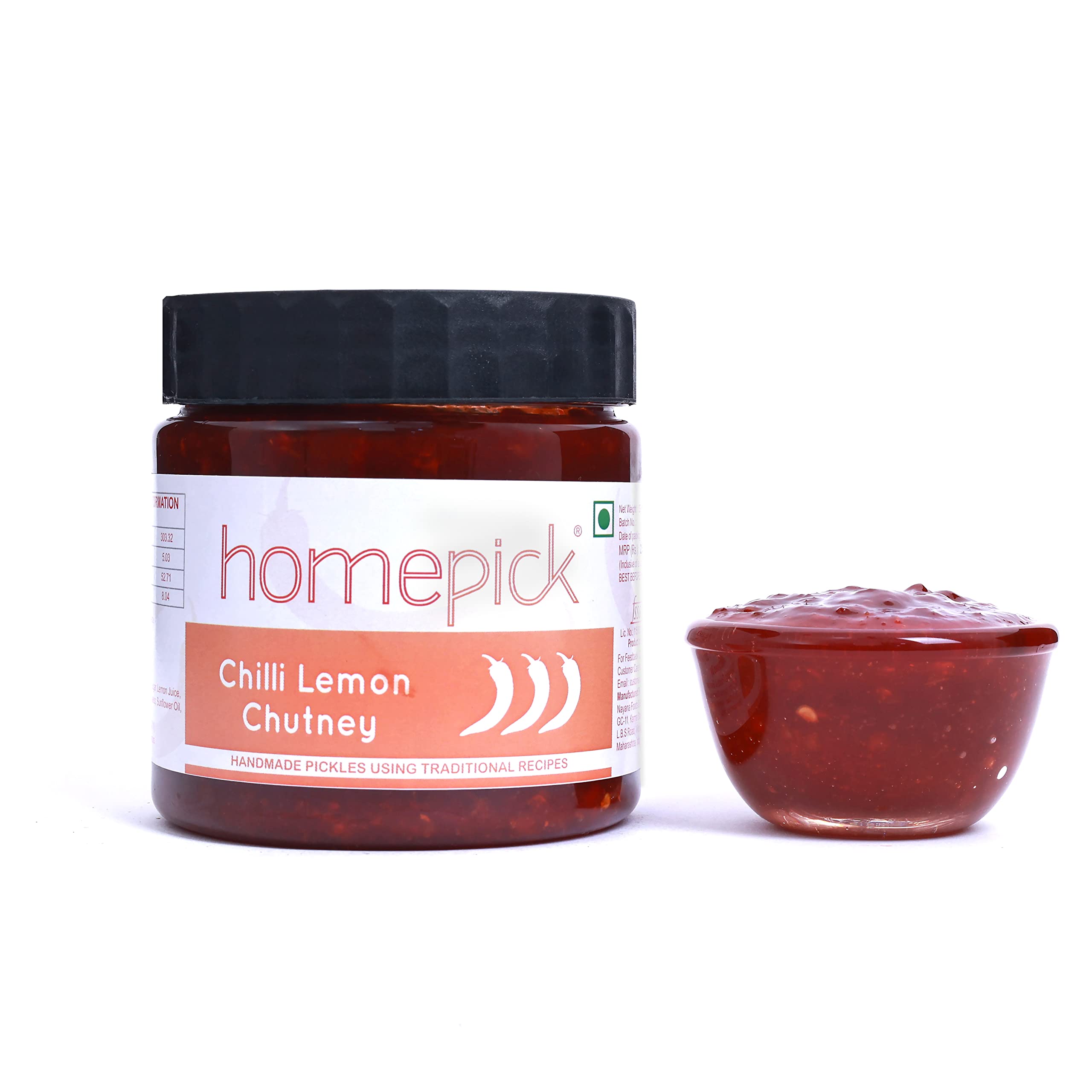 Is it spicy? No no it is sweet....No wait its tangy. Yes its all three together. Goes with just about every kind of food Homepick's Chilli Lemon Chutney is made from premium kashmiri red chillis lemons and sugar. We bet you will keep coming back for more. All our pickles are handmade using the most pure and premium quality ingredients be it mangoes, lemons, chillis, oil or spices. We make over thirty different varieties of pickles which range from the conventional to the most unique varieties of pickles consisting of sweet to sour to spicy to tangy recipes catering to each and every palate. Our variants include several regional specialties of India like the Gujarati Chhundo and Gol Keri, Rajasthani Ker Sangri, Andhras Avakkai Mango, Maharashtrian Thecha, Kolkatta Pickle and many others.