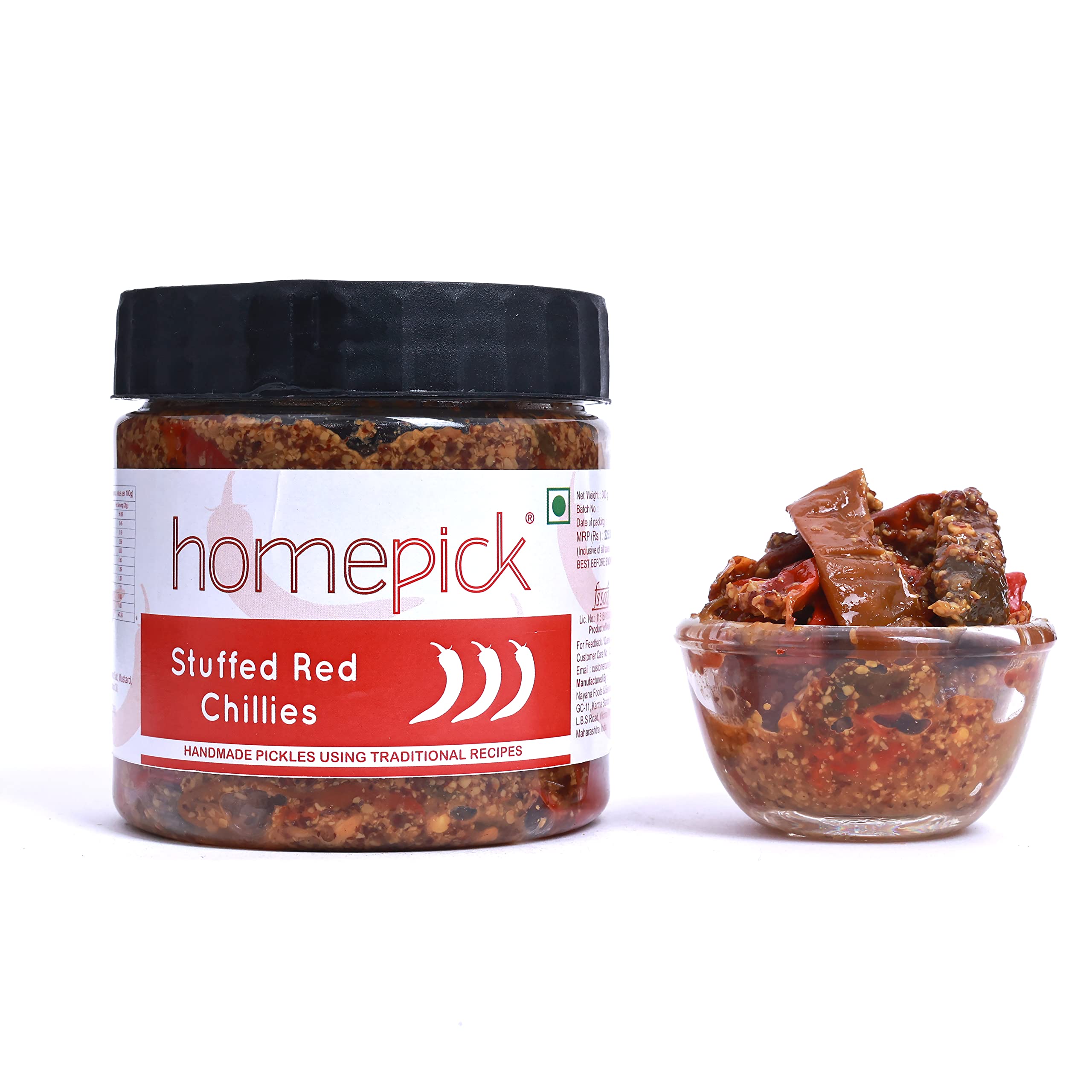 Our Stuffed Red chilli pickle is made using whole long red chillis sourced from Rajasthan. Theses chillis are mild spicy in nature and we pickle them using a traditional marwadi recipe which costitutes a blend of Indian spices like mustard fenugreek dry mango powder salt and very little oil. Compliments every traditional Indian dish. All our pickles are handmade using the most pure and premium quality ingredients be it mangoes, lemons, chillis, oil or spices. We make over thirty different varieties of pickles which range from the conventional to the most unique varieties of pickles consisting of sweet to sour to spicy to tangy recipes catering to each and every palate. Our variants include several regional specialties of India like the Gujarati Chhundo and Gol Keri, Rajasthani Ker Sangri, Andhras Avakkai Mango, Maharashtrian Thecha, Kolkatta Pickle and many others.