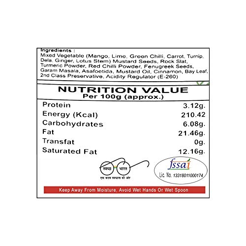 • Ingredients: Mixed vegetables (mango lime green chilly carrot turnip Dela ginger lotus stem)