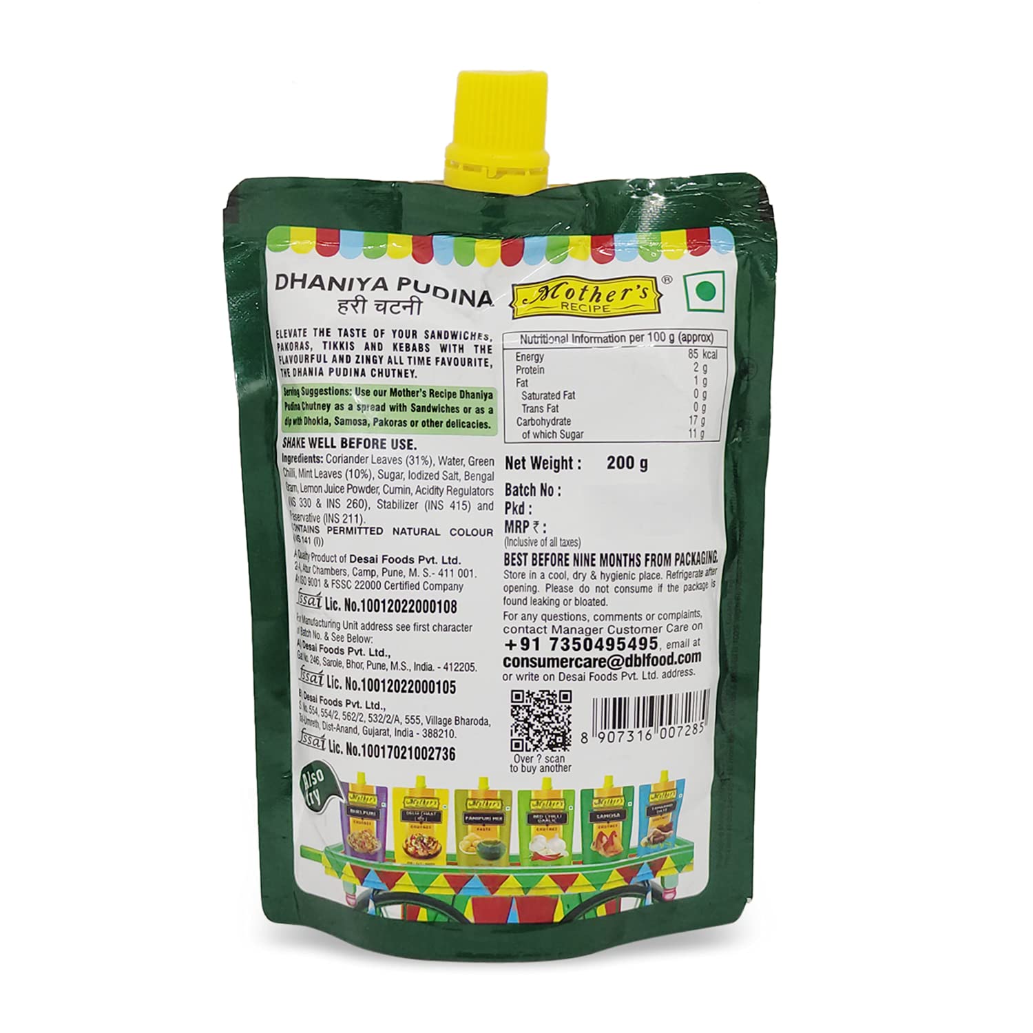 Mother's Recipe Dhania Pudina Chutney Pouch 200 G