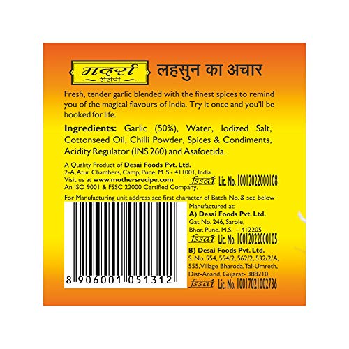 Mother's Recipe Garlic Pickle Bottle, 300 g