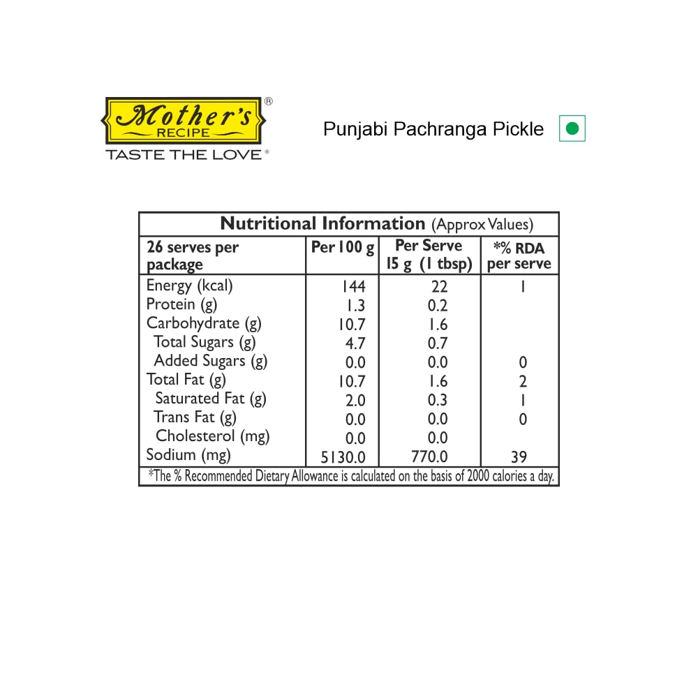 Mother's Recipe Punjabi Pachranga Pickle Bottle 400 G