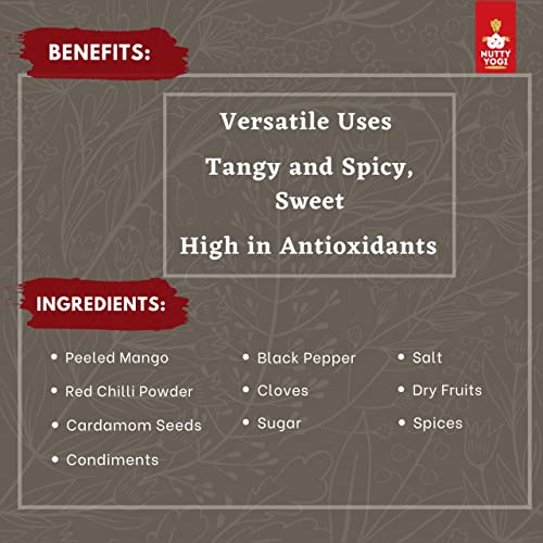 The Nutty Yogi Chunda Pickle is a classic Gujarati sweet and sour mango pickle that is made with combining grated raw mangoes with sweetness and tanginess of spices.