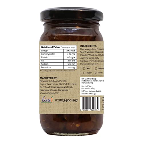 Aam Ki Chutney is essentially pickle type Chutney made by cooking raw green mango pieces with special indian spices and sugar. The spices give it a nice aroma while chili powder and sugar gives its hot and sweet character. Made in the traditional Banarasi style Nutty Yogi's mango chutney is as good as it gets.