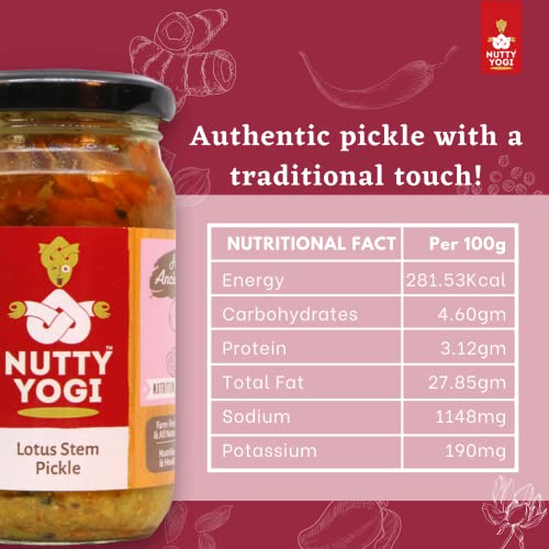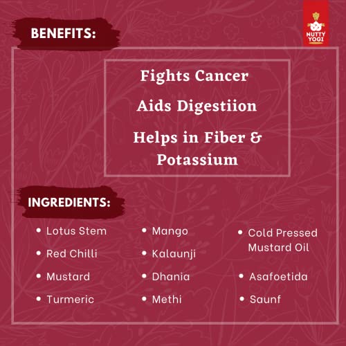 Nutty Yogi Nutritious & Healthy Lotus Stem Pickle (Kamal Kakdi) | Made with Cold Pressed Mustard Oil | Vintage Receipe | Zero Preservatives - 200 gm Pack of 2