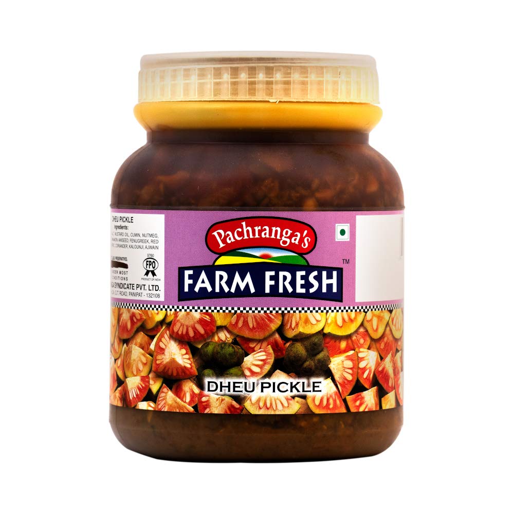 The Finest Flavour of Indian Tradition Since 1925. Original North Indian taste dheu pickle in edible oil. Real pieces of dheu. Excellent partner to Paranthas Roti Dal Chawal and so on! World famous Pachranga brand from Panipat.