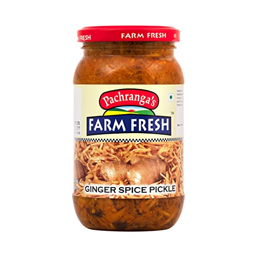 Original North Indian taste Ginger spice pickle in edible oil. Real pieces of Ginger. Excellent partner to Paranthas Roti Dal Chawal and so on! World famous Pachranga brand from Panipat.