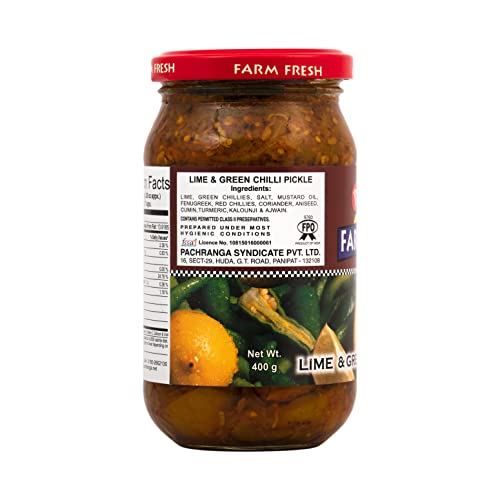 The Finest Flavour of Indian Tradition Since 1925. Original North Indian taste Lime Green Chilli Pickle in edible oil. Real pieces of Lime & Green Chilli. Excellent partner to Paranthas Roti Dal Chawal and so on! World famous Pachranga brand from Panipat.