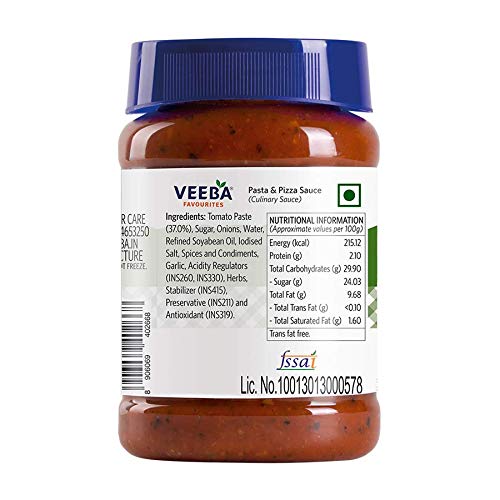 I got veeba pasta and pizza sauce in damaged condition. Outlook was good that no one can predict that it's used from inside.there was black n white fungus around the inner foil cover. Unsatisfied. Very bad experience ??