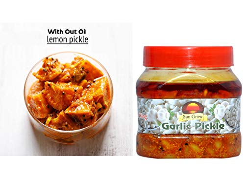 Sun Grow Combo -Without Oil Maa Ka Hath Ka/ Mother Made Homemade Masalo Se Bana Chatpata Punjabi Lemon Pickle 1kg-& Homemade Garlic Pickle Achaar for Health Special 500Gm