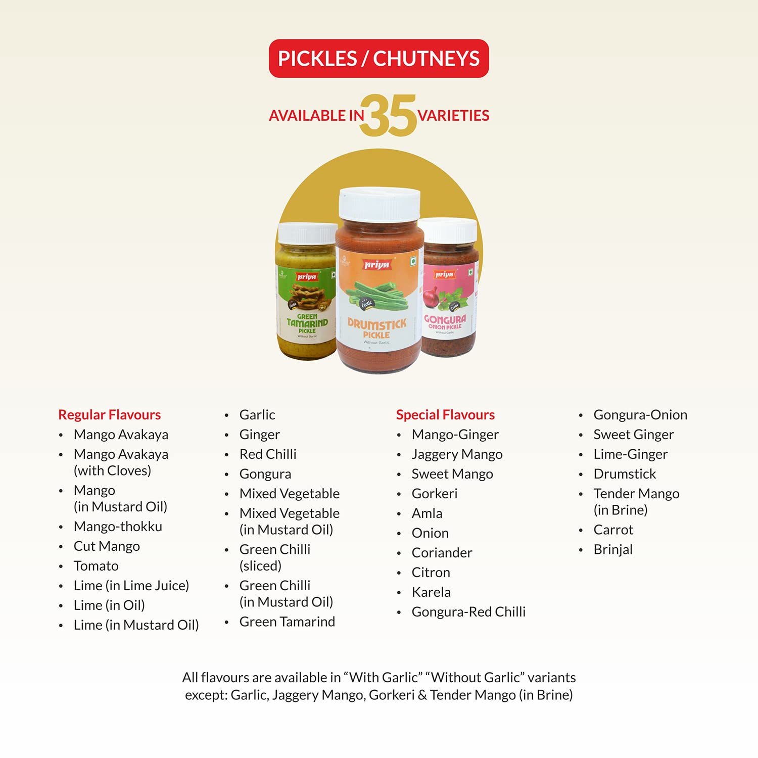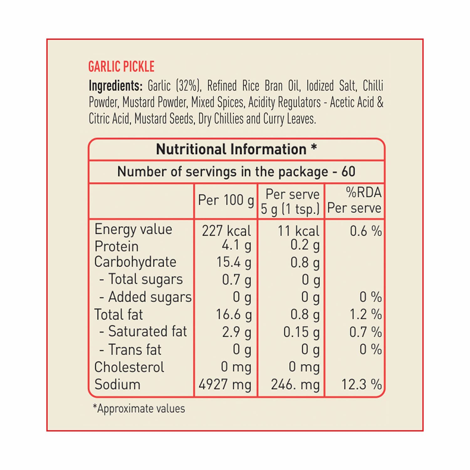 HomeGroceryFlavorsHomemade PicklesPriya Garlic Pickle 300g - Authentic Telugu Style Achar | Traditional South Indian Taste | Homemade Lahsun Achar | Tangy and Spicy| With Garlic Pieces and Mixed Spices| Glass Jar