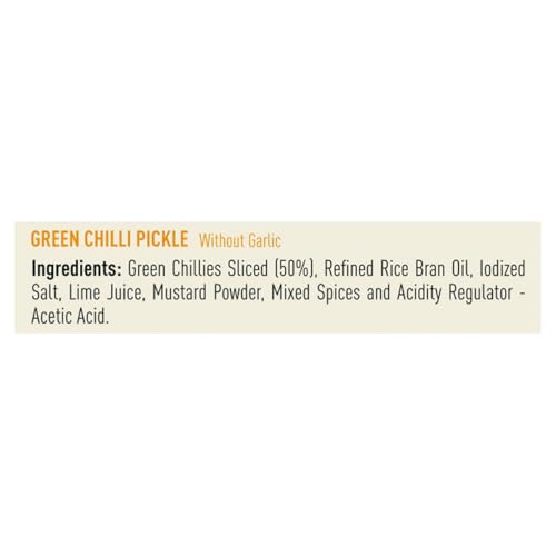 Complete every meal at home or at the office with this delicious mirchi ka achar (without garlic) from the legendary brand Priya Foods and get transported back to your childhood. This achaar is a lovely twist to the fresh hari mirch - a spice lovers delight! Ingredients - Sliced green chillies refined rice bran oil iodized salt lime juice fenugreek powder turmeric powder acetic acid & mixed spices. Nutrition - We at Priya Foods have successfully integrated traditional science with modern-day scientific manufacturing. Our green chilli pickle contains wholesome ingredients from our kitchen like carefully selected chilli. Fenugreek known for diabetic management and having a positive effect on digestive health. Turmeric which has anti-inflammatory effects and is a very potent antioxidant. Lime juice which has the highest percentage of Vitamin C. Why choose Priya Foods? Priya Foods is a legendary brand that started in 1980 and is a household name primarily in South India famous for its pickles and chutneys. Along with international recognised Food Safety Management System certifications with a commitment towards hygiene and safety. It strives to consistently bring to you tasty mouth watering pickles which will remind you of home. Priya Foods has successfully taken the goodness of South Indian pickles all over the world!