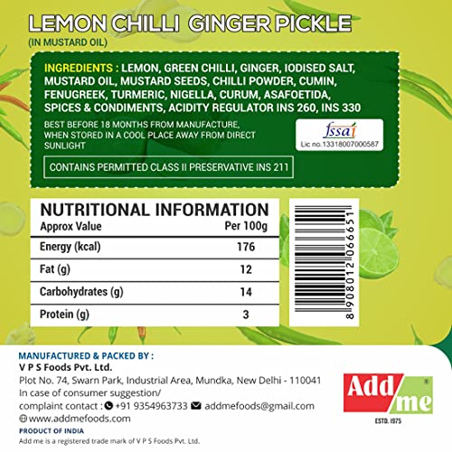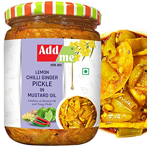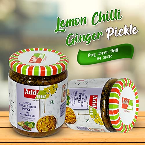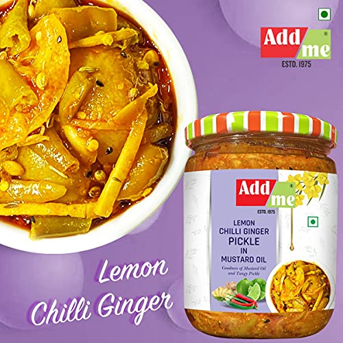 Add me Mixed Pickle 500g of Lemon Chilli Ginger Nimbu Mirchi Adrak ka mix Achar in mustard oil Glass Pack