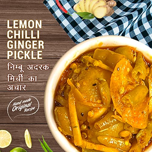 • Mixed Pickle of Lemon chili and ginger. A vintage combination all over India. no fillers and no unwanted vegetables. just pure bliss.