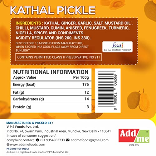 Add me Kathal pickle is naturally fermented pickle. low on salt and oil. you will love its distinct aroma and taste.
