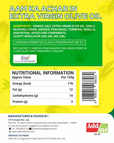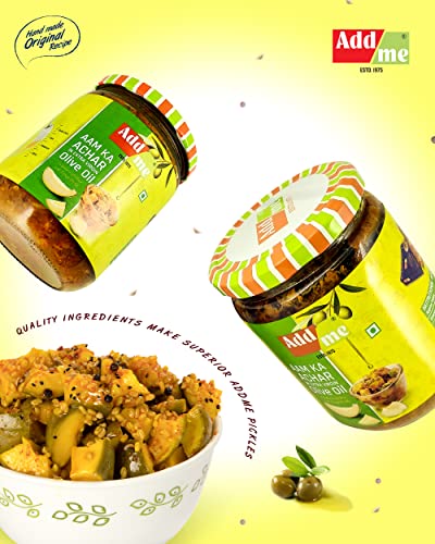 Add me Home Made Mango Pickle in Pure Extra Virgin Olive Oil 500gm Aam ka Achar Glass JAR