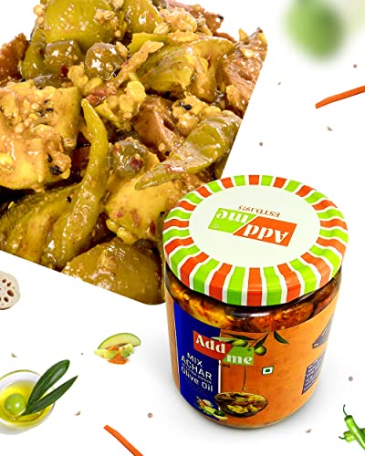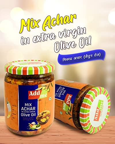 Add me Home Made Mixed Pickles 500gm in Extra Virgin Olive Oil Mango Chilli Lemon Carrot ker Ginger karonda lasoda Fruit Mix Achar Pickle Glass Jar