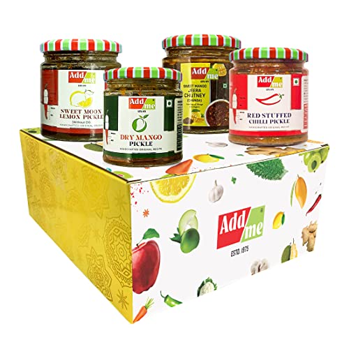 Add me has the largest range of pickles, murabbas and chutneys having homemade taste and are healthy to eat. Different flavour of pickle including Heeng Mango Pickle, Carrot Pickle, Garlic Pickle, stuffed chili pickle and so on. Murabba flavours include bel muarbba, amla murabba and so on. Chutney flavours