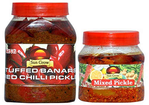 Sun Grow Combo -Home Made Organic Stuffed Banarsi Red Chilli Pickle (Real Taste of Banarsi Pickle) 1kg -&Homemade Flavour & Taste Pachranga Mix Vegetable Pickle 500gm