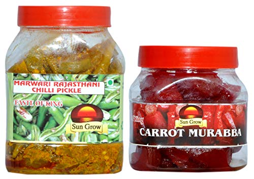 Sun Grow Combo -Without-Oil Organic Homemade Marwadi Rajasthani Green Chilli Pickle Achaa (Real Taste of Rajasthani Pickles) 1kg-& Organic Homemade Carrot Murabba with Honey (Without Syrup) (500 Gm)