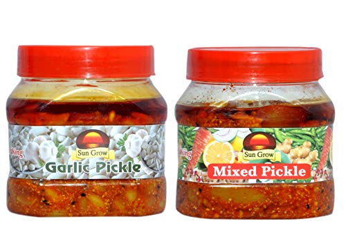 Sun Grow Combo-Homemade Garlic Pickle Lasun Achaar (500 g)- Homemade Flavour & Taste Pachranga Mix Vegetable Pickle (500gm)