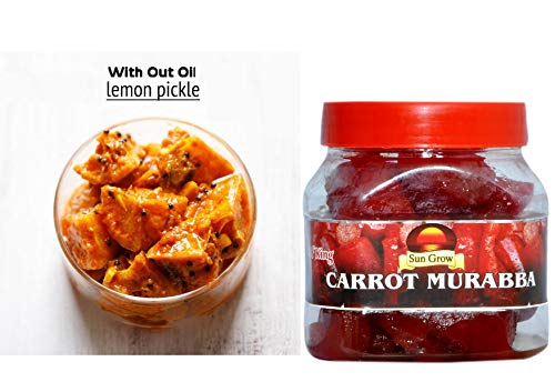 Sun Grow Combo - Maa Ka Hath Ka/ Mother Made Homemade Masalo Se Bana Chatpata Punjabi Lemon Pickle 1Kg -& Organic Homemade Carrot Murabba with Honey (Without Syrup) (500 Gm)