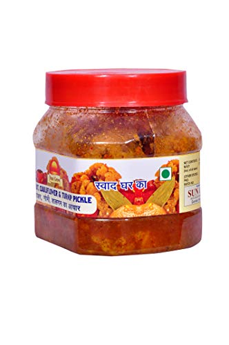 Sun Grow Organic Home Made Gobhi Gajar Shalgam Achar 400grams Punjabi Sweet & Sour Mixed Pickle of Carrot, Turnip & Cauliflower