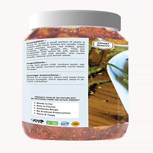 Be amused by the authentic flavours of Rajasthanireen chilli that strikes the perfect accord of flavours and spices mixed in proportion to create one of the most mouth-watering pickles in the form of Homemade Kalonjireen Chilli Pickle (Kalonji Hari Mirch). Our sweet sour and delicate pickles are traditional heirloom family recipe. It is a much-loved traditional Indian side-dish that is easy to store and convenient to use. It is a delicious blend of spices with traditional spices. Taste the spellbinding pickles of Agri Club. We know how to combine flavours pick the right ingredients and add love toet the best aroma and blend. Agri Club bringing to you the pickle treasures to make your meals perfect. Click and order the treasure your tongue would savour. Our pickles are manufactured using only natural ingredients and contain no artificial colors flavours or preservatives thus ensuring the highest nutritional value. Each of our variants is an ideal blend of iconic ingredients. Enjoy these pickles at the comfort of your home.
