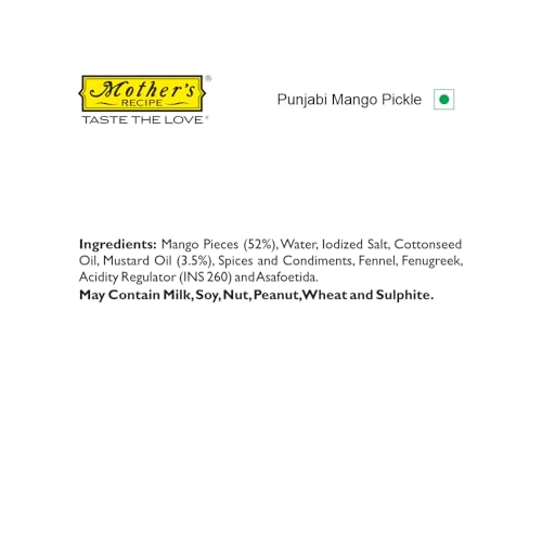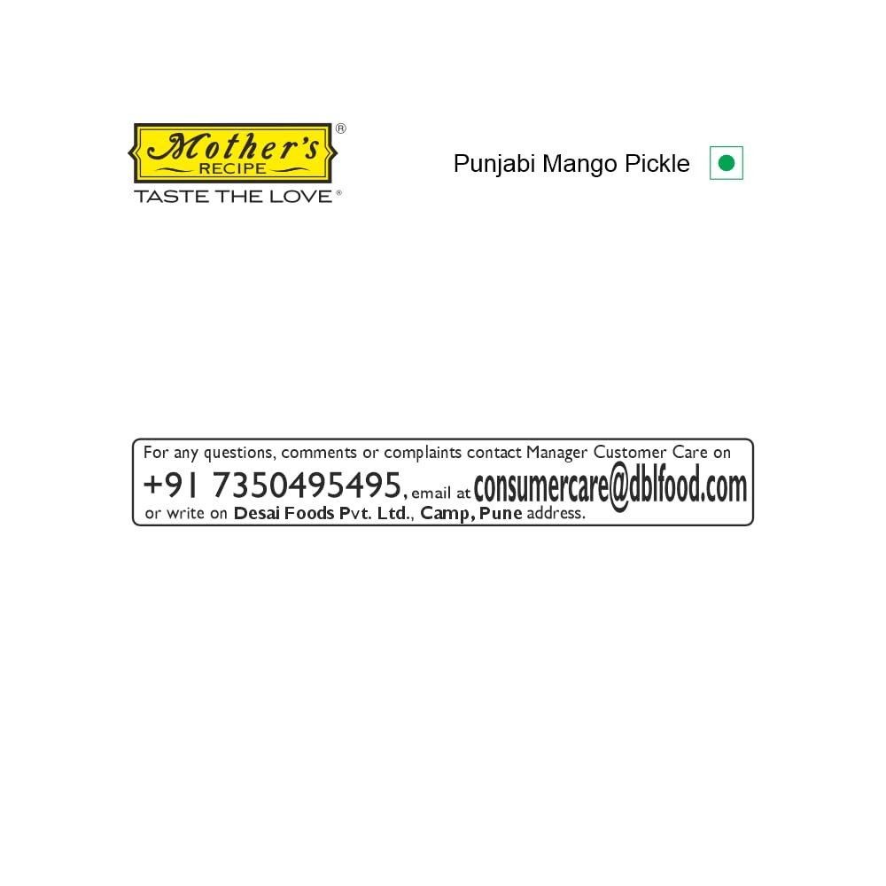 Mothers Recipe Pickle - Punjabi Mango is prepared in punjabi style. It prepared by using superiority of mango and extra ingredients. It has spicy taste. Mango dried under the sun and mixed with seasoning and transformed into this pleasurable Punjabi delight.