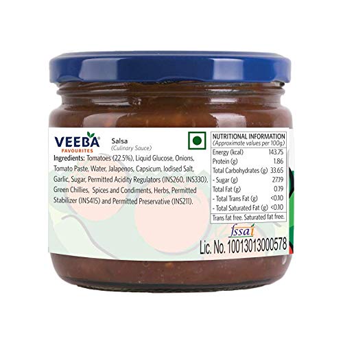 The real salsa sauce and this one from Veeba differs a lot in taste. Also should be available in QTY 1 because this one is available in QTY 2 so its a waste since taste is not good.