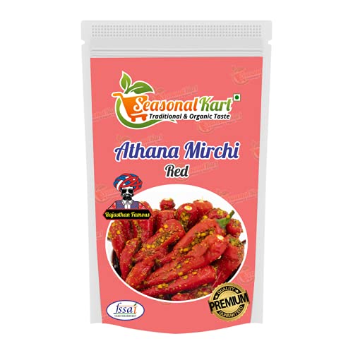Seasonal Kart Homemade Red Athana Mirchi Achar 1.2 kg |Rajasthani Special Red Athana Mirch Pickles Pack of 3 x 400GM