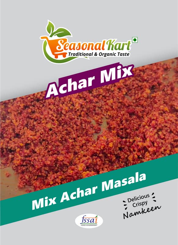 Seasonal Kart Rajasthani Homemade Achar Masala| Ready to Use Pickle Masala |Natural Ingredients | No Artificial Color Or Preservatives| About Us: We believe that our reputation must be based on the quality of our products. We have travelled across the country to handpick the finest quality products at the best possible rates. We maintain great taste and guaranteed quality throughout the year and our products are sure to be your new favorites after your first purchase. About Product: Achar or pickle is an important part of any Indian household. It's a condiment with all meals and many kinds of snacks. Seasonal Achar Masala is a blend of fresh aromatic and homemade rajasthani spices that are ground together to give your mango and vegetable pickles a great flavor and rich color. Seasonal Kart is a blend of fresh and aromatic spices that is ground together to be the assistive agent that can make you the creator of the most perfect pickles and condiments. Pickels are the best suited with Indian dishes responsible for the punch it gives to food on the plate. Be it the most loved Aam Ka Achaar or Mixed Vegetable Achaar our Achaar Masala is guaranteed to be the best because our spice blend is simply the best. Country of Origin: India Seasonal Kart: Traditional & Organic Taste