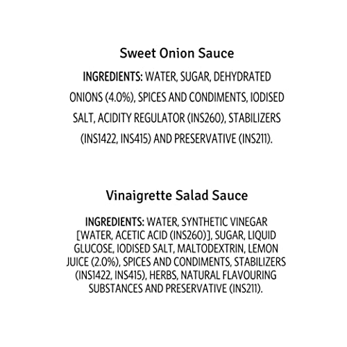 Well within expiry.The vinaigrette is a tangy flavour apt for saladsThe sweet onion along with chipotle, mustard makes any sandwich a subway sandwich. It's pretty sweet but has the onion taste and has onion seeds also in it which elevate the taste.