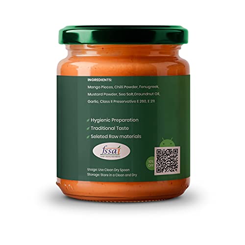 TREASURE HOUSE OF TASTE: Give your taste buds a treat by ordering our mouth-watering Mango pickle AUTHENTIC DISTINCT AND HEALTHY: All the Essentials are graven naturally with a natural method that ensure quality and naturality of good. HOMEMADE: Made with traditional recipes handed down through generations giving your buds the essence of Motherlove. COMPLIMENT WITH INDIAN DISHES: Our magic recipe creates wonders in the mouth and tastes best with all Indian meals Dals Cheela Pakora Khichdi and Paratha. LESS OIL USAGE: Mango Pickleâ is a pure homemade pickle it contains very little oil and thus can be easily consumed by the elderly and kids also.