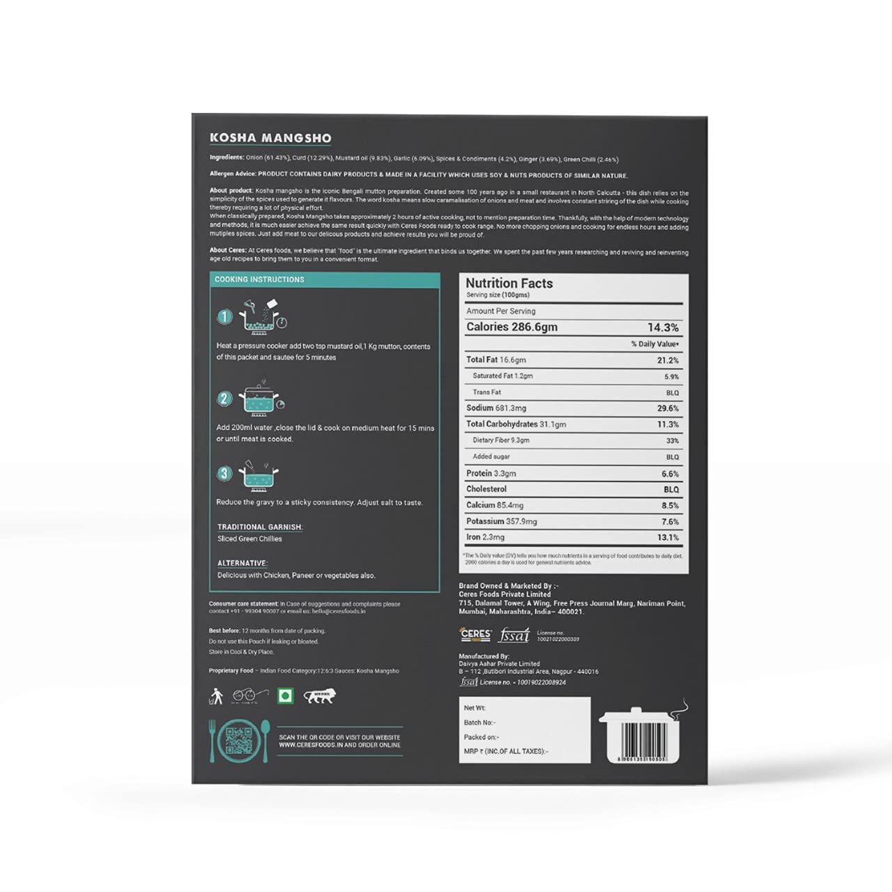 CERES FOODS Indian Bengali Kosha Mangsho Instant Liquid Masala Simmer Sauce Just Add 35 Ounces of Mutton to the Curry Packet & Water Mutton Paste Masala Bihar's Recipe, 200 gm