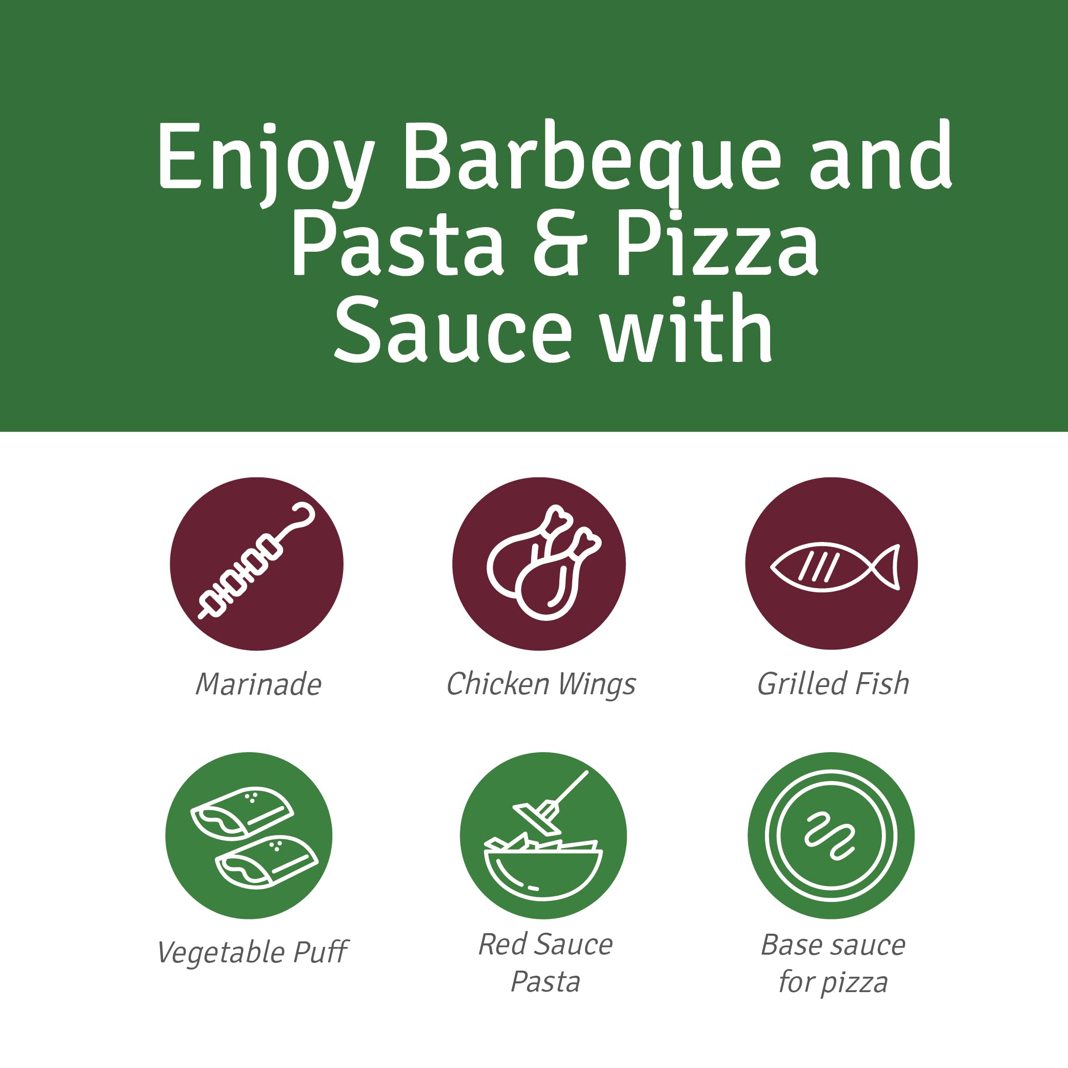Veeba pasta-pizza sauce & barbeque sauce is a perfect combination for making delicious pizzas pastas chicken wings & grilled chicken.
