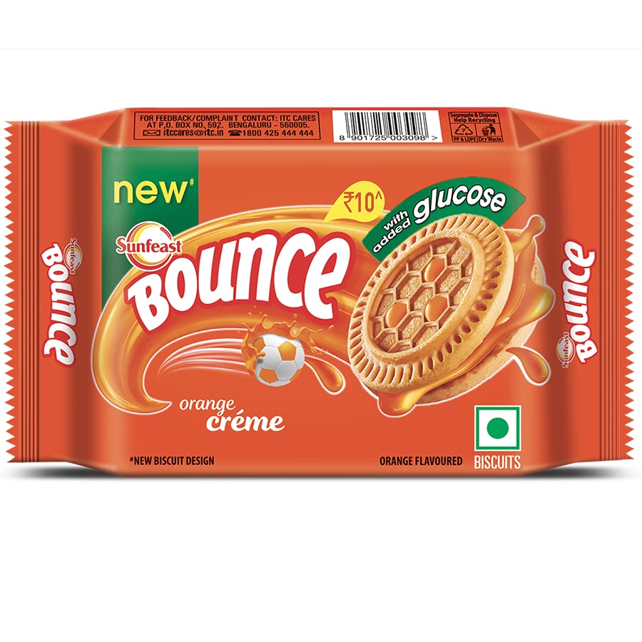 Sunfeast Bounce Choco Twist biscuits are deliciously creamy and deliciously fun. The orange flavoured biscuit shell encasing the soft creamy centre transports you to a world of fun and excitement .