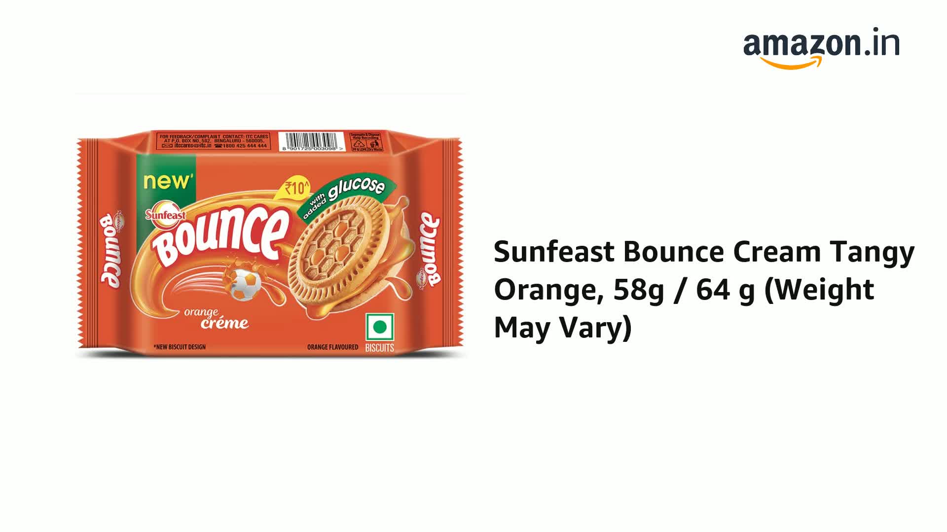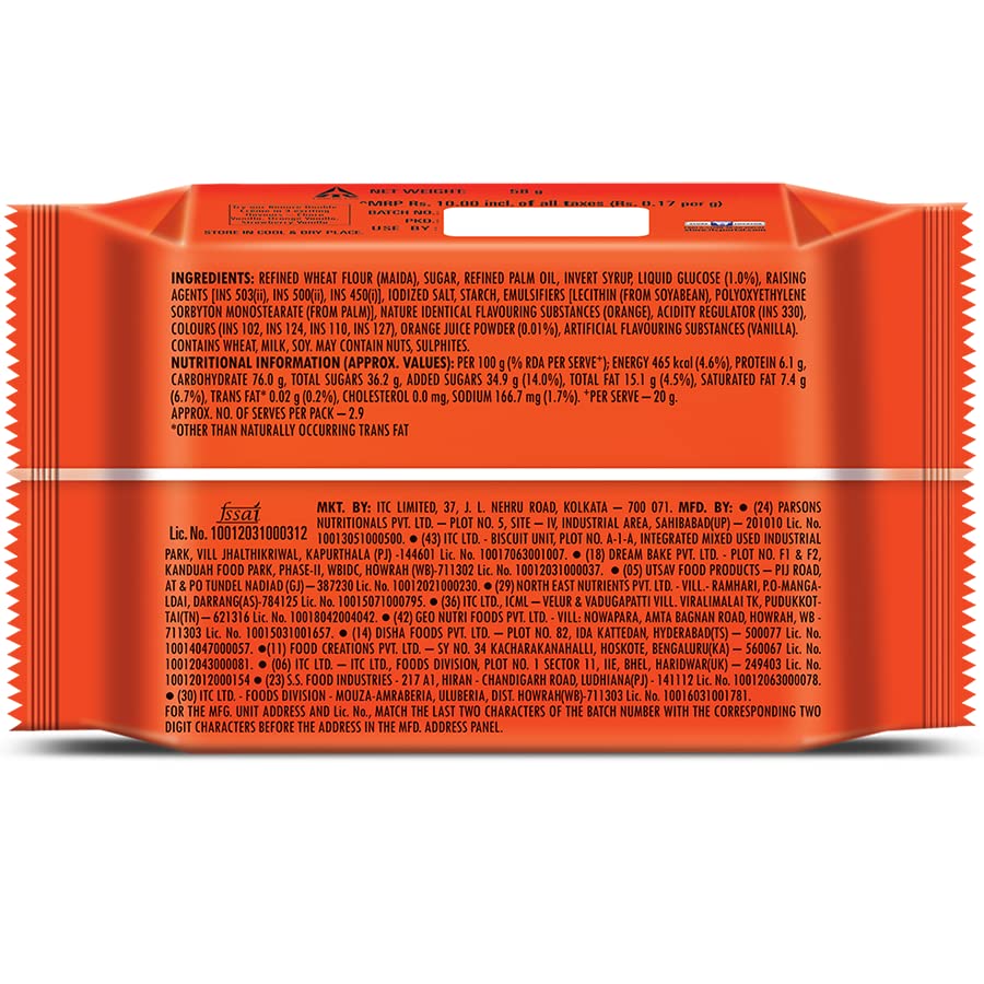 Sunfeast Bounce Cream Tangy Orange, 58g/62g/64g ( Weight May Vary )