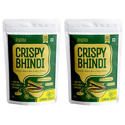 Rivera Crispy Bhindi (Lemon Chili) Okra Chips Vegetable Snacks Vacuum Cooked So No Need To Cook Ready To Eat 50G Each (Pack of 2)