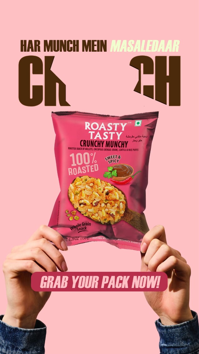 Absolutely love this roasted namkeen by Roasty Tasty! Its super crunchy and genuinely tasty as the name goes.Best part is that it is 32% millets which is indeed a rarity!Taste hai,