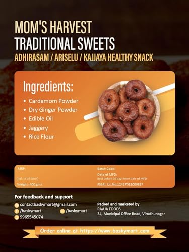 MOM'S HARVEST Traditional Sweets Adhirasam / Ariselu / Kajjaya Healthy Snack - 200 Grams