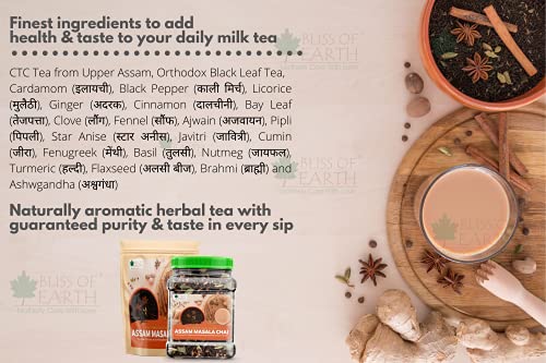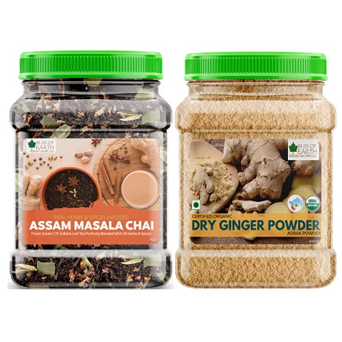 Bliss of Earth Combo Of Finest Assam Masala Chai (400gm) Blended CTC leaf infused with 20 real herbs & spices And Organic Dried Ginger Powder (500GM) for Tea Pure Antioxidant Super Food (Pack Of 2)