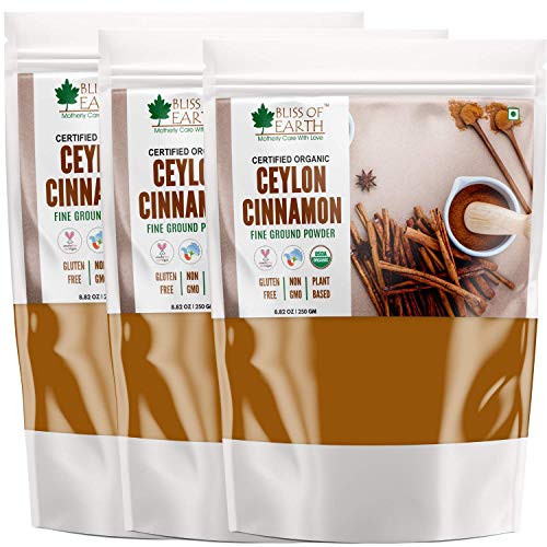 Bliss of Earth Certified Organic Ceylon Cinnamon Powder is a purer and healthier version of cinnamon. Ceylon cinnamon has a sweeter & delicate flavor than the more common Cassia cinnamon.In addition to its positive medicinal benefits ceylon cinnamon is ideal for all culinary usage.Our Ceylon Cinnamon is organically grown harvested and manually processed using traditional methods that have been used for centuries.Ceylon cinnamon known as true cinnamon is the purest form of cinnamon. Most commercial cinnamon is of the Cassia variety which has much less flavor or nutritional benefit since it contains much higher levels of coumarin. Ceylon cinnamon also has a more pleasant fragrance than the harsh pungent Cassia cinnamon. Use our pure cinnamon in your recipes and taste the difference.