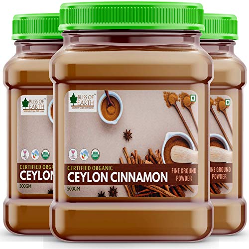 Bliss of Earth Certified Organic Ceylon Cinnamon Powder is a purer and healthier version of cinnamon. Ceylon cinnamon has a sweeter & delicate flavor than the more common Cassia cinnamon.In addition to its positive medicinal benefits ceylon cinnamon is ideal for all culinary usage.Our Ceylon Cinnamon is organically grown harvested and manually processed using traditional methods that have been used for centuries.Ceylon cinnamon known as true cinnamon is the purest form of cinnamon. Most commercial cinnamon is of the Cassia variety which has much less flavor or nutritional benefit since it contains much higher levels of coumarin. Ceylon cinnamon also has a more pleasant fragrance than the harsh pungent Cassia cinnamon. Use our pure cinnamon in your recipes and taste the difference.