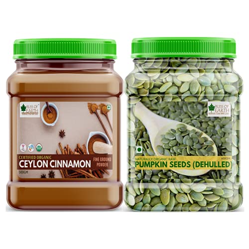 Bliss of Earth Combo Of Ceylon Cinnamon Powder (500gm) And Dehulled Pumpkin Seeds (600gm) For Eating & Weight Loss Naturally Organic Superfood Pack Of 2