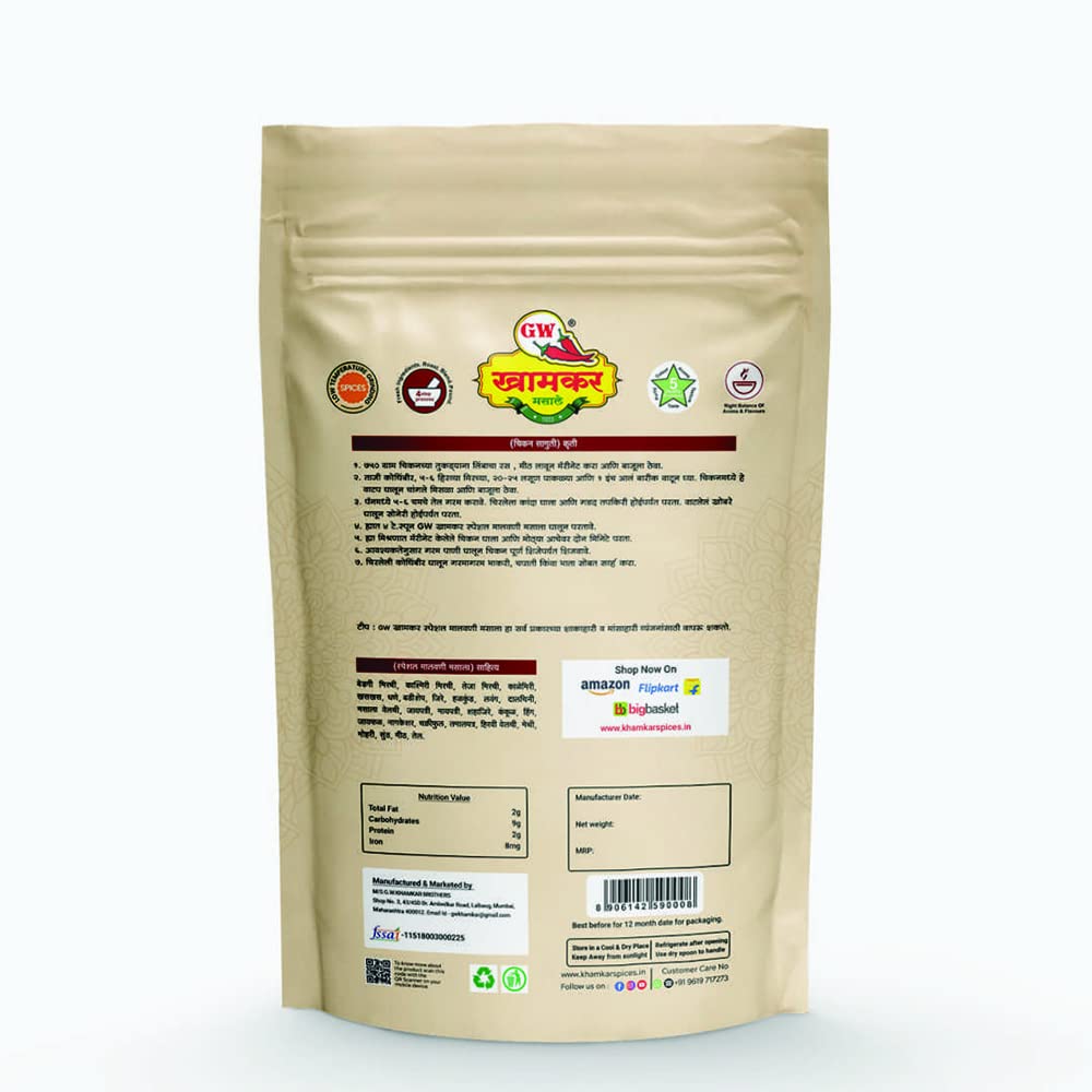 Gw Khamkar Special Malvani Masala Spices Taste Of 90 Years Experience 28 Handpicked Ingredients Coastal Age-old Recipe Zip Lock & Re-usable Pack (185G Pack Of 2).